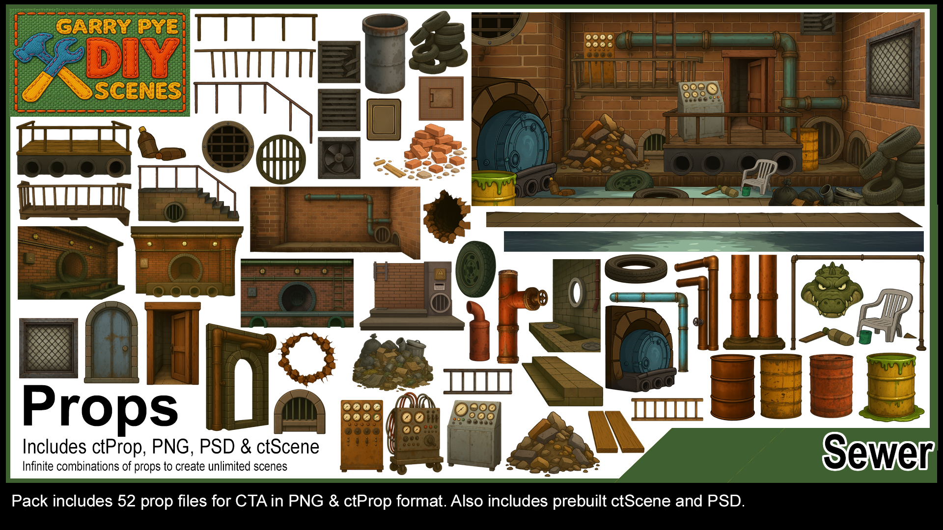 A collection of individual prop elements that can be combined in any number of ways to build scenes that can be used as static backgrounds for your media or animation. The art for this pack was created using artificial intelligence software.