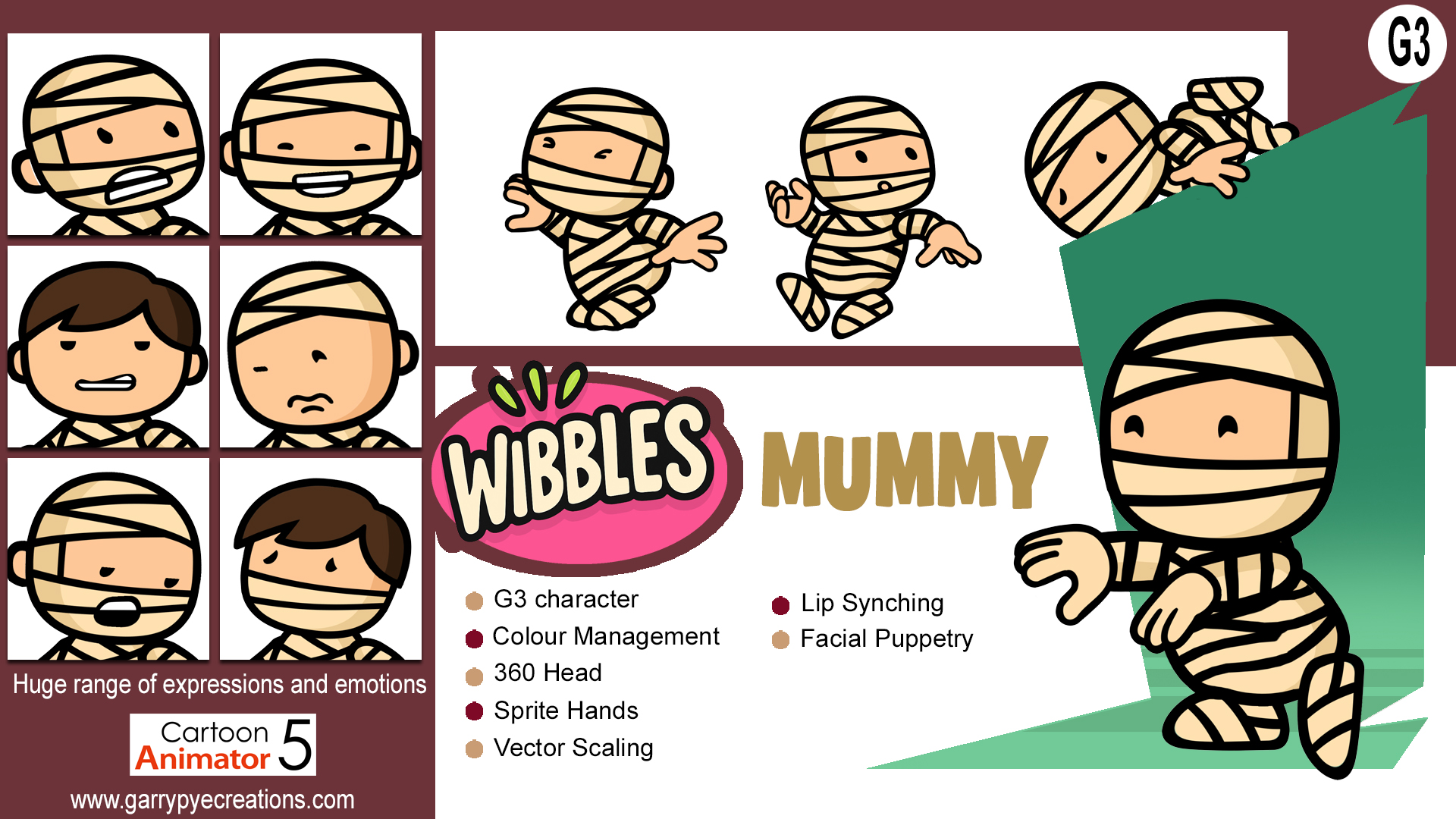 - – x1 Mummy G3 actor (ctTBactor) file for Cartoon Animator 5 or higher